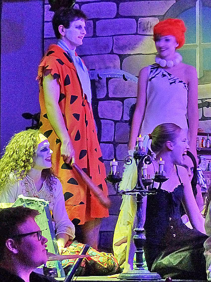 So wie sich die beiden Jungverliebten erst einmal zusammen finden müssen, und es sogar nach einem Auseinandergehen aussieht, hinterfragen ihre beiden Elternpaare ihre jeweiligen Beziehungen zunehmend. Morticia ist enttäuscht von ihrem Mann, der ihr ein Geheimnis vorenthalten hat. Alice vermisst, nachdem sie die "verrückte" Addams Family kennengelernt hat, diese Verrücktheit an ihrem eher spießigen Mann. Beide Paare stehen kurz vor der Trennung. Für Verwirrung sorgen auch Pugsley, der Granny eine geheimnisvolle Droge klaut und sie Wednesday heimlich einflößen will, da er sie als Schwester zu verlieren fürchtet, jedoch Alice erwischt; sowie Onkel Fester und die Ahnen der Familie. Am Schluss finden jedoch alle drei Paare (wieder) zusammen, auch Pugsley ist zufrieden, da Wednesday ihm verspricht, ihn weiter zu quälen, bis er eine eigene Beziehung hat, und Fester hat mittels einer selbst gebastelten Rakete seine Liebe zum Mond erfüllen können. Der bis dahin sprachlose Lurch leitet mit dem Schlusslied "Tauch hinab ins Dunkel" das gemeinsame Finale ein.“ Den Mitwirkenden an diesem Beziehungswirrwarr gelingt es meisterhaft, über mehr als zwei Stunden gelungene Unterhaltungskost abzuliefern und das sowohl schauspielerisch wie auch überwiegend gesanglich. Der Rezensent kann sich hier ganz der Bewertung von Silja Weisser aus dem WK Stadtteilkurier vom 12. Februar anschließen: „Artur Saake schmeißt sich als Familienoberhaupt Gomez vor allem gesanglich ins Zeug und schmettert kraftvoll seine Soli in die Aula. Für den 18-Jährigen liegt der Reiz in der Zerrissenheit der Rolle des Grusel-Vaters.Er muss seiner Frau Morticia gerecht werden, die Mafalda Rauhut wunderbar divenhaft gibt, und gleichzeitig Töchterchen Wednesday einen Wunsch erfüllen. Verkörpert von Merle Dannenberg, hat sich diese dummerweise in einen "ganz normalen" Jungen verliebt und will ihn heiraten. |